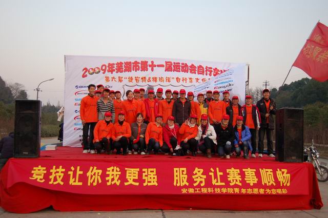 126,芜湖市第十一届运动会自行车比赛暨第六届捷安特&禧玛诺自行车文化节如期在市神山公园隆重举行,本次活动主题是“创造自行车新生活-挑战自我 创造骑迹”。应大赛组委会邀请,纺织服装系精心组织了由系青年志愿者服务队和系学生会成员组成的31人的大学生志愿者服务队,为比赛提供全部的志愿服务和后勤保障工作。