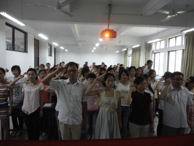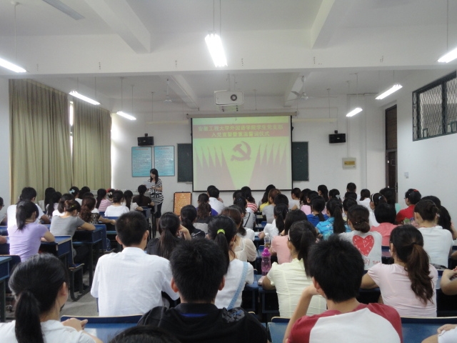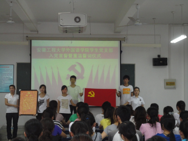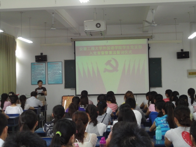 在全党上下开展“创建先进基层党组织、争当优秀共产党员”活动之时,在建党89周年即将到来之际,6月25日下午2:30,外国语学院学生党支部在9教101教室举行了学生党员入党宣誓暨重温誓词仪式。外国语学院全体学生党员参加了仪式。外国语学院党总支副书记谈丽华,团总支书记李烨及辅导员余本祺、李飞出席了仪式。仪式由李烨主持。