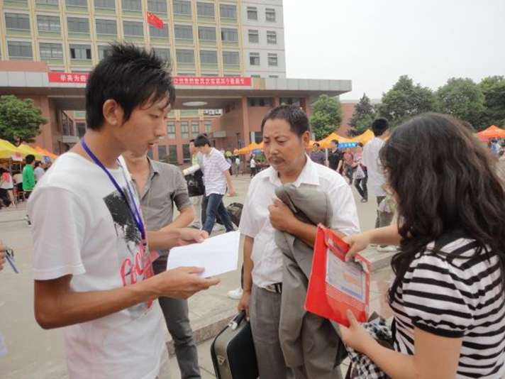 为保证把党员先进性切实落实到实际工作中并接受师生监督,参与迎新工作的党员同学全部佩戴校徽和党徽,在新生接待处、登记处、引导处与学生会的工作人员和青年志愿者们一起开展迎接工作。艺术学院本次报到新生有552人,人数多、任务重,为提高接待效率,学生党员们进行了分工协作,有的负责引领,有的负责搬运行李,有的负责解答家长和新生的疑惑,有的负责维持秩序,所有工作有条不紊,秩序井然。