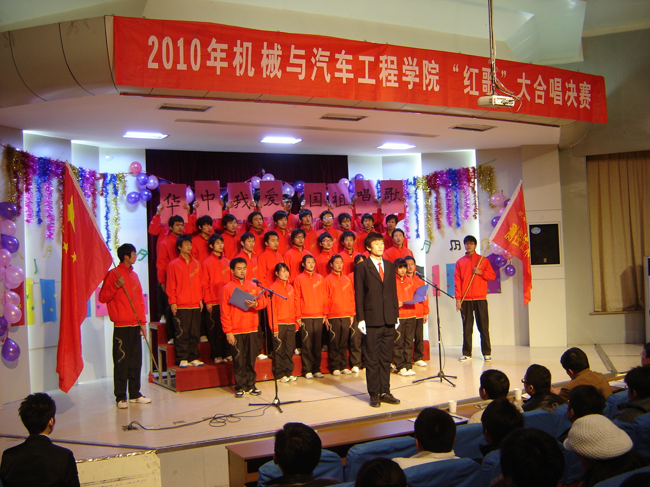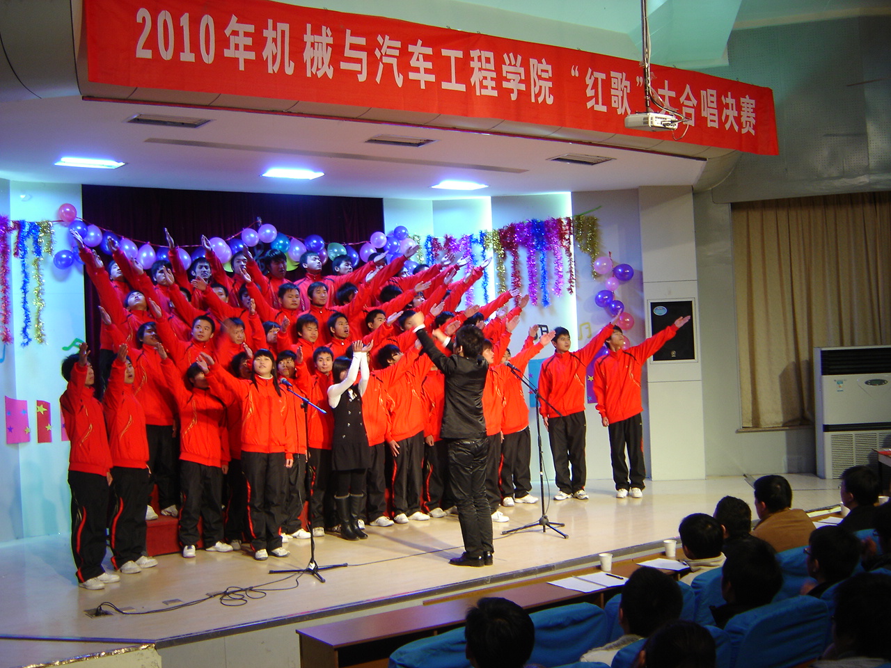 为弘扬革命传统,积极倡导集体主义精神,推进创先争优活动新高潮,并丰富新生的课余生活,让新生适应大学生活,机械与汽车工程学院特举办了“创先争优,红歌比赛”。1217日晚上,比赛决赛在学术报告厅隆重举行。出席此次决赛的嘉宾有机械与汽车工程学院党委副书记邓英扣,团委书记黄炜,新生辅导员等。