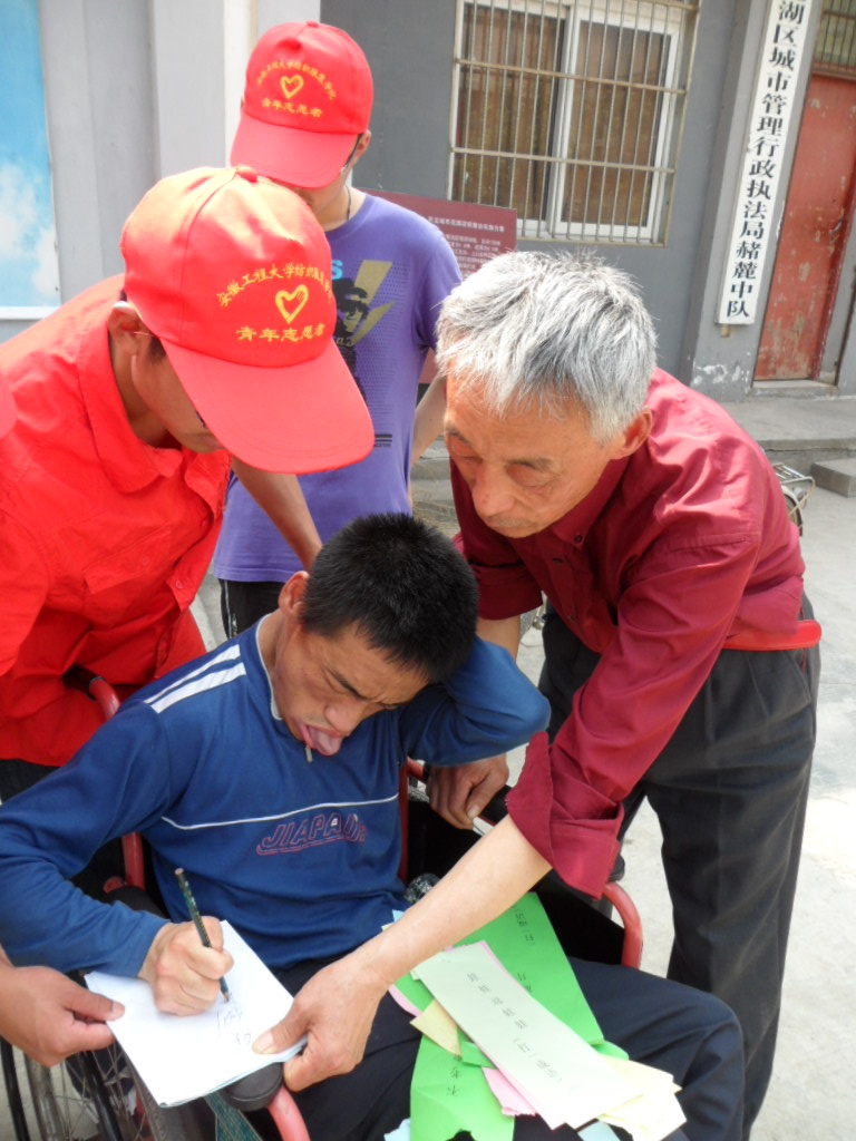 在活动开始之前,为了给残疾朋友们提供一个更好的活动环境,队员们协助社区工作人员积极布置活动现场,并陪同残疾朋友们到指定的位置就坐。上午9:00,活动在感恩的心这首优美的旋律中正式开始。志愿者们先陪同残疾朋友们观看了精彩的节目演出,并为残疾朋友们送上茶水。随后,志愿者们陪同残疾朋友一起参与到竞猜谜语的活动中,与他们一起体验竞猜的乐趣,分享胜利的喜悦。11:00,活动在和谐融洽的氛围中结束。