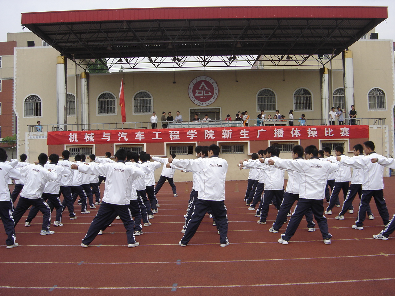 514上午,机械与汽车工程学院2011年新生广播操比赛在校塑胶操运动场隆重举行。莅临本次比赛现场的嘉宾有院党委副书记邓英扣,以及辅导员王彦青、高倩老师。体育学院王建、许思明老师应邀担任此次比赛的评委。