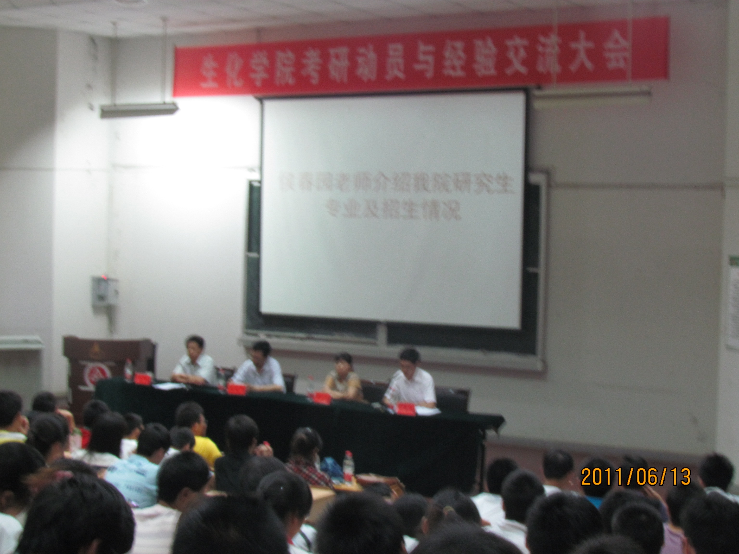 6月13日,生物与化学工程学院考研动员与经验交流大会在2J报告厅如期举行。莅临现场的嘉宾有院长徐建平教授、副院长薛正莲教授、党委副书记章兵老师,研究生秘书侯春园老师以及08级辅导员。大会分考研动员和考研经验交流两个阶段进行。本次大会由党委副书记章兵主持。