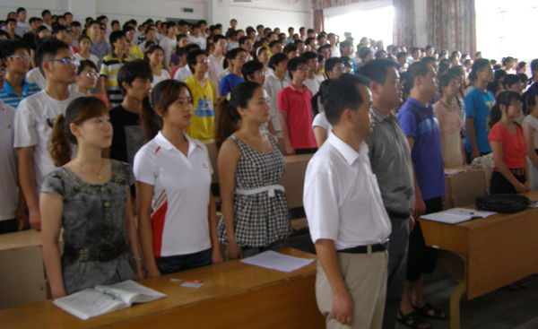 最后,机电学院学生预备党员集体谈话暨入党宣誓仪式在肃穆的《国歌》声中圆满落下帷幕。