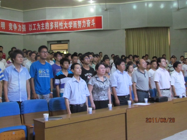 大会在庄严的国歌声中拉开序幕。首先王弘宣读了我院毕业生中获得安徽省品学兼优毕业生、2010-2011学年度校级毕业生先进个人、选调生名单,薛正莲副院长宣读了考取研究生学生名单,学院领导给获奖学生颁发了获奖证书。