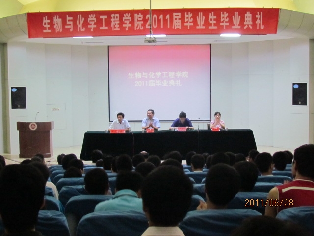 6月28日下午,生化学院在学术报告厅隆重召开2011届毕业典礼。学院党委书记王弘、院长徐建平、副院长薛正莲、党委副书记章兵、教研室主任、毕业班辅导员、2011届毕业生出席了大会。典礼由学院党委副书记章兵主持。