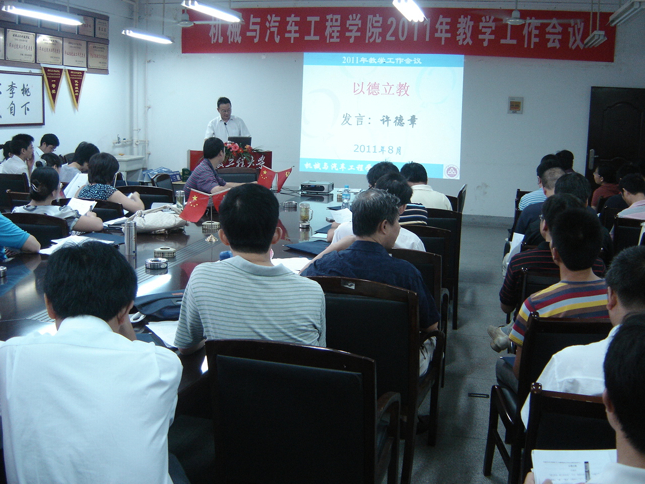根据学校《关于召开2011年暑期教学工作会议的通知》(校教字〔201171号)精神,机械与汽车工程学院2011年教学工作会议于2011822-23日隆重举行。校党委副书记、校长干洪,教务处长柴阜桐应邀出席会议,参加会议人员有许德章院长、邓英扣书记以及机械与汽车工程学院全体教职工。