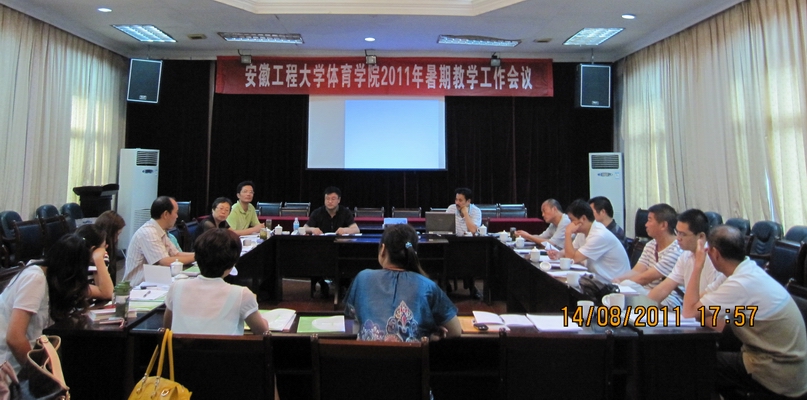 本次会议主要议题有:体育艺术表演专业培养方案的进一步论证及公共体育教学改革、体育学院“十二五”发展规划的研讨与编制。文才新书记就我校高素质应用型人才培养目标下的体育艺术表演专业培养方案和公共体育课程改革方案做了大会报告,方新普院长针对学院十二五规划进行了战略性的分析,随后与会人员针对以上内容进行了热烈的讨论,提出了许多具有建设性的宝贵意见。副校长叶常林对本次体育学院教学工作会议给予了充分的肯定并提出了三点希望:1、体育学院跨越式发展机遇很多、平台很广、要求更高,要有所为有所不为,体育学院要紧密围绕学生身心健康深入开展工作。2、要贯彻落实学校的育人方针和学校的办学宗旨,以应用型人才培养和服务地方经济作为培养方案制定的基本依据,学科和专业发展方向要一致,要在深入研究的基础上,以学生的就业和市场需求为导向,要注重实践和学生特点进行教学。3、要创新机制,要有危机意识,要共同努力,维护来之不易的团结局面,使各项工作再上新台阶。