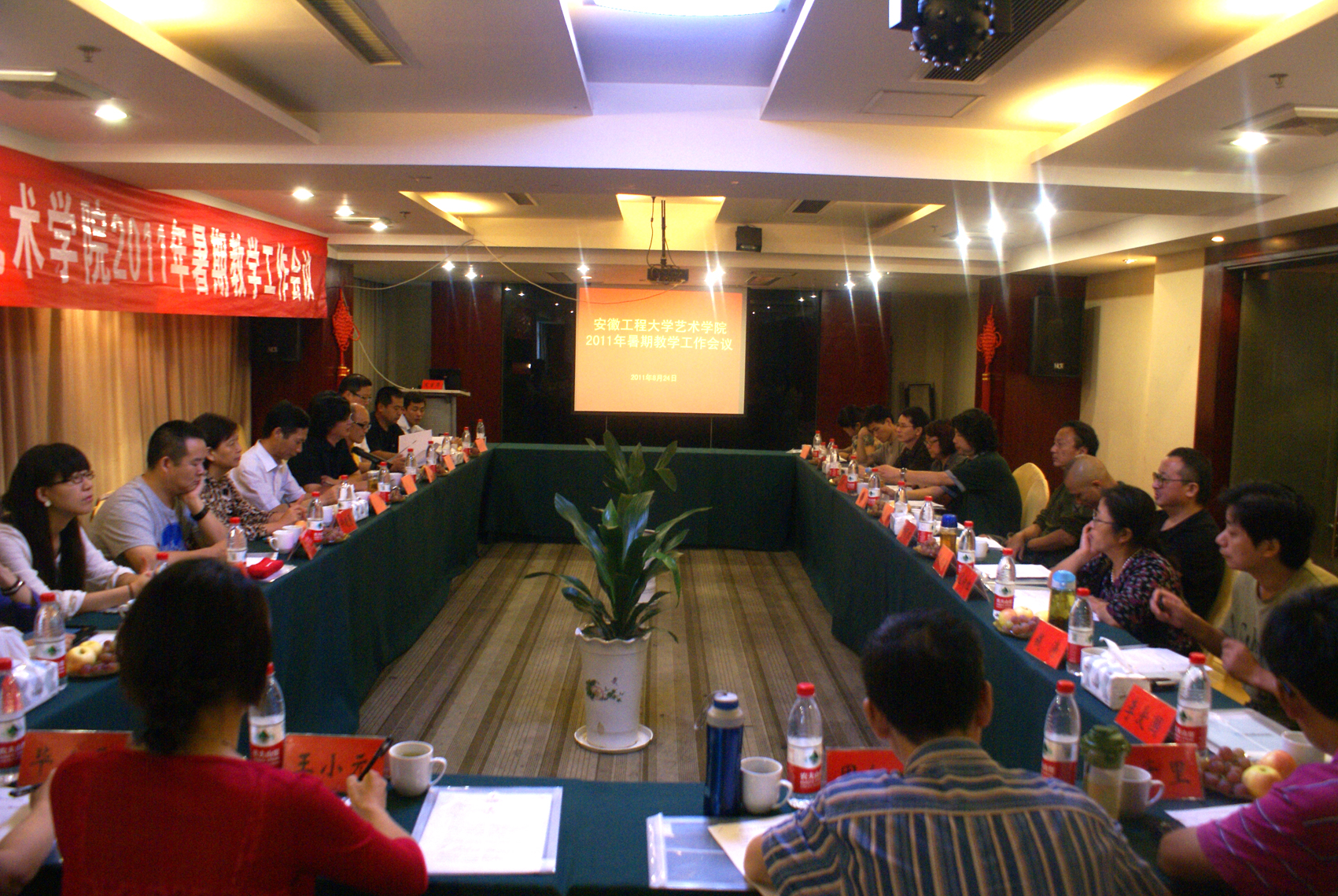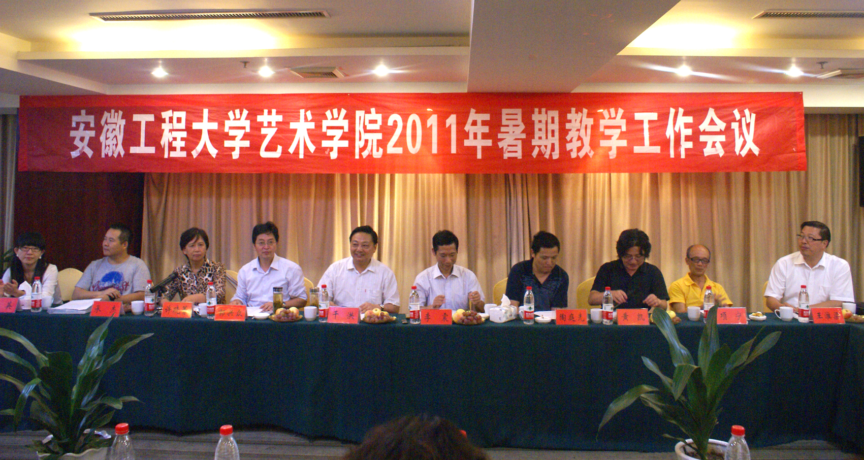 根据《学校关于2011年暑期教学工作会议的通知》精神,艺术学院于2011年8月23日至25日,在江苏溧阳召开了暑期教学工作会议。参加会议的有学院党政领导、各专业系的正副主任及相关管理人员,学校党委副书记、校长干洪,副校长李震,校办公室主任郭兴众,校高教研究所所长、教务处副处长陶庭先,学校教学督导员项宁应邀出席了会议。艺术学院院长黄凯主持了会议。