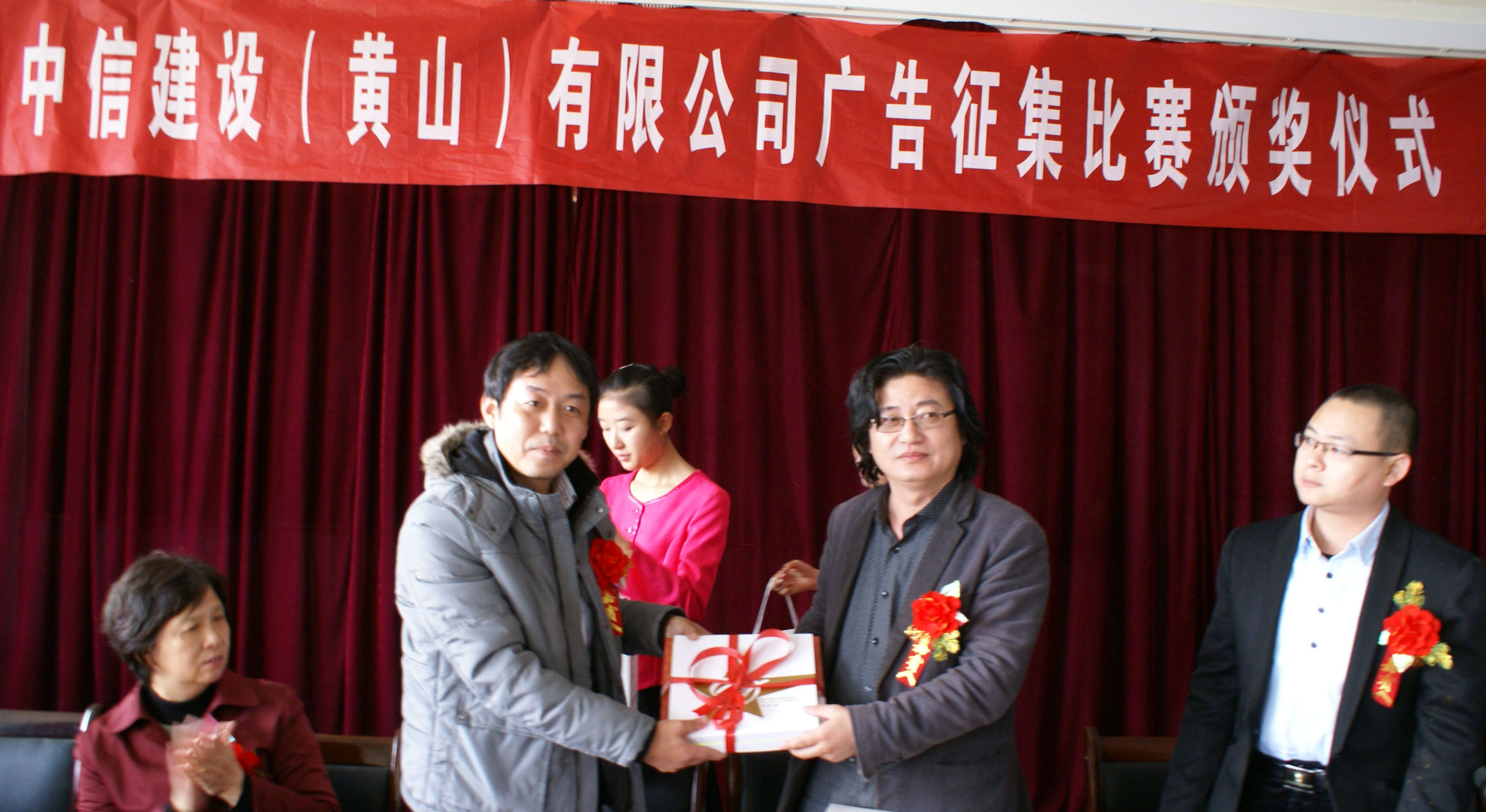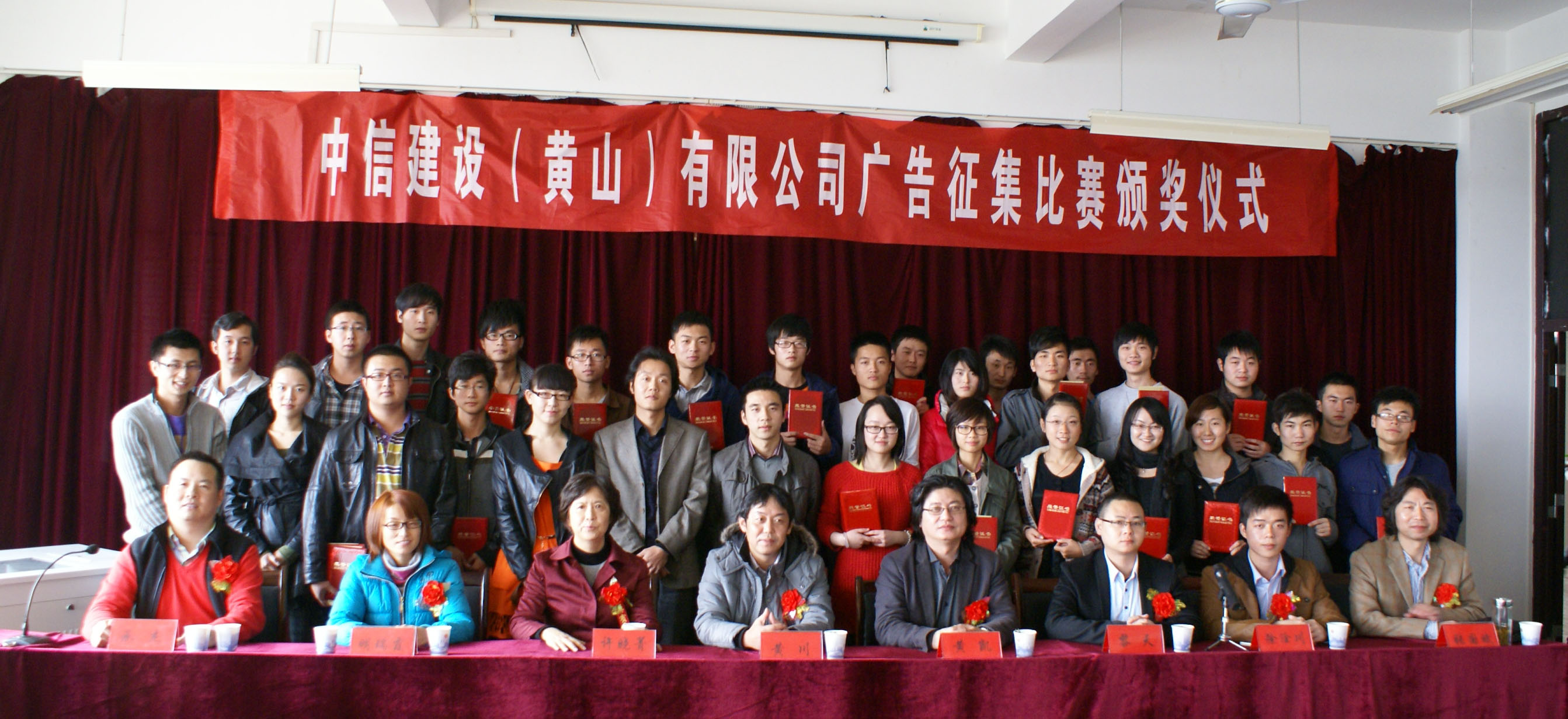 11月15日下午3时,中信建设(黄山)有限公司广告征集大赛颁奖大会在艺术学院会议室隆重举行。中信建设(黄山)有限公司副总经理黄川、营销副总监黎天、营销主管明瑞霞、营销助理徐淦川,艺术学院党委书记许晓菁、院长黄凯、广告系主任张国斌、新媒体系主任承杰出席了颁奖大会,并在主席台就坐。作品指导教师及参赛选手80多人参加了大会。会议由承杰教授主持。