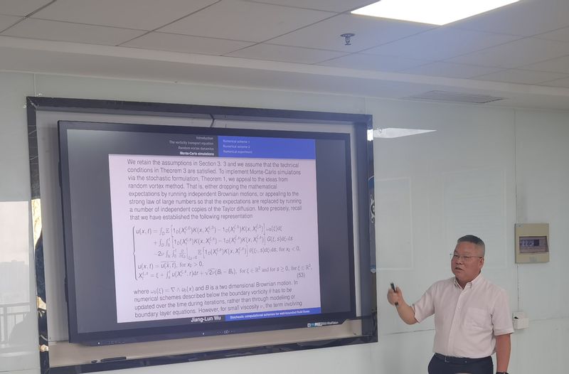 吴奖伦教授围绕这个《Monte-Carlo simulations for wall-bounded fluid flows via random vortex method》主题,利用随机涡旋方法对壁面流体流动进行了蒙特卡罗模拟,并生动展示了模拟过程中的动态效果。