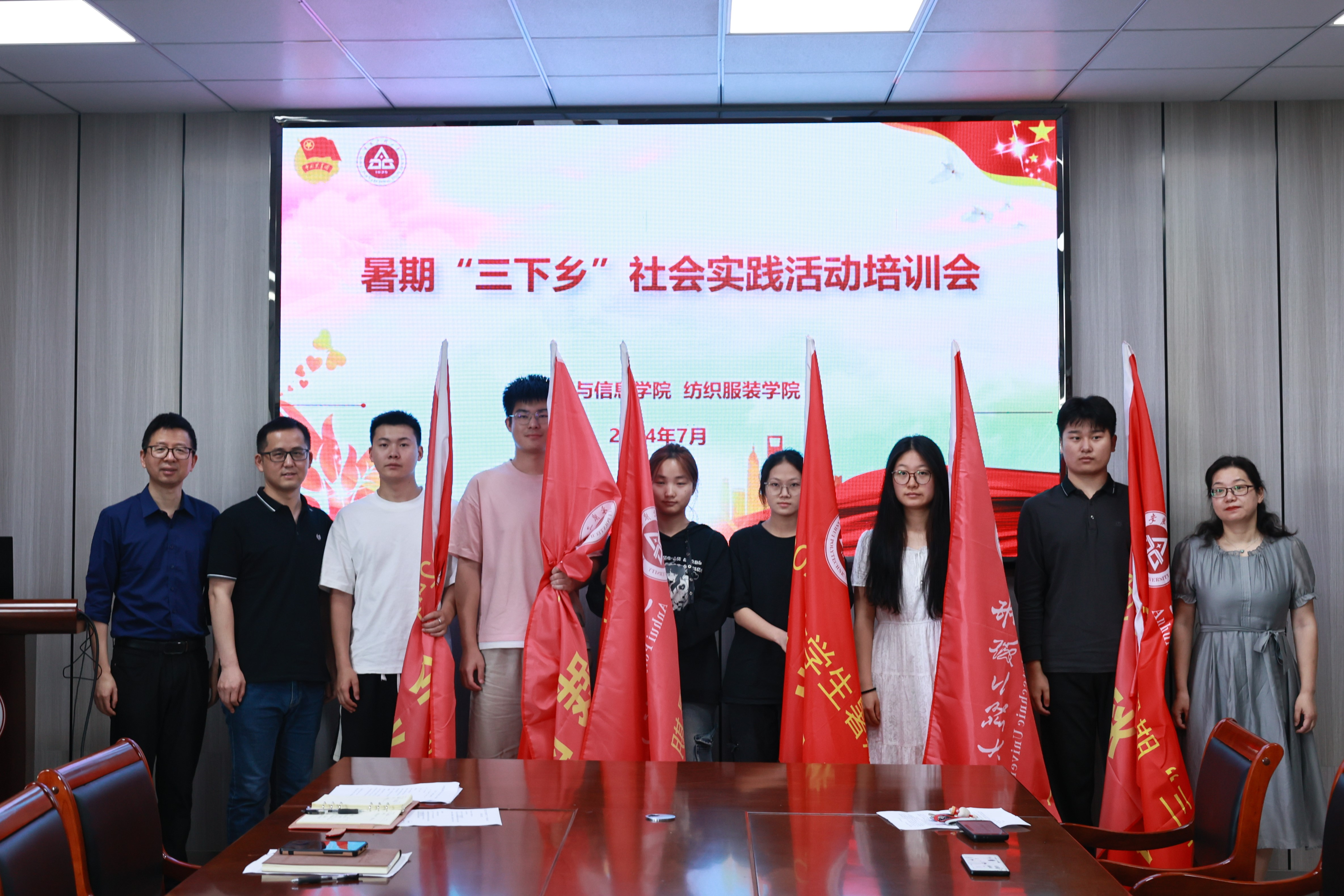 本网讯 7月3日,纺织服装学院、计算机与信息学院在D座413会议室召开2024年暑期“三下乡”社会实践活动培训会,校团委副书记周海林、计算机与信息学院党委副书记孙德茹、纺织服装学院党委副书记梁雪松、实践团队指导老师、学生负责人参加。会议由计算机与信息学院团委负责人孙力力主持。