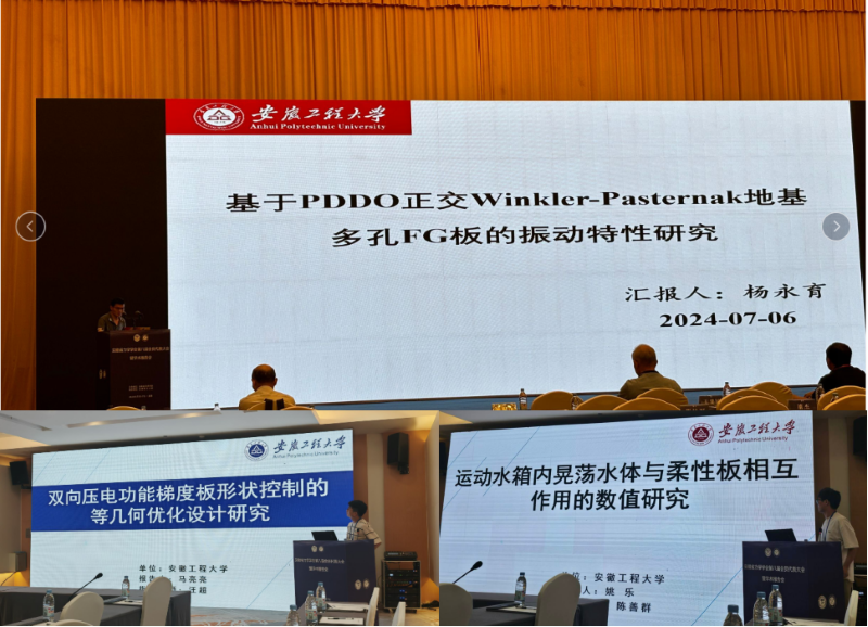会议安排了分会场学术报告及交流活动,学院参会师生与同行学者进行了深入交流,重点就力学领域前沿科学和教学相关问题进行了学术交流与探讨。学院教师杨永育做了题为“基于PDDO正交Winkler-Pasternak地基多孔FG板的振动特性研究”的学术报告。此外,学院研究生马亮亮、姚乐分别做了题为“双向压电功能梯度板形状控制的等几何优化设计研究”、“运动水箱内晃荡水体与柔性板相互作用的数值研究”的学术报告,并获得了研究生优秀报告奖。
