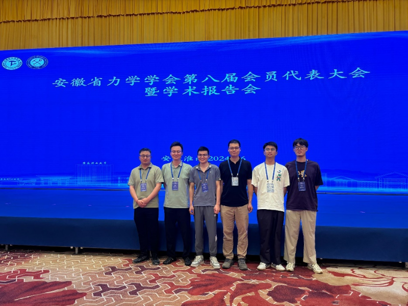 本网讯 7月5日,由安徽省科学技术协会指导,安徽省力学学会主办,安徽理工大学承办的安徽省力学学会第八届会员代表大会暨学术报告会在安徽淮南隆重召开。此次会议旨在为了交流我省力学学科的研究成果,促进我省力学学科建设,便于更好地开展我省力学学会工作。建筑工程学院力学教学部教师葛仁余、汪超、廖斌、赵航、杨永育与研究生马亮亮、姚乐参加了此次交流研讨会。