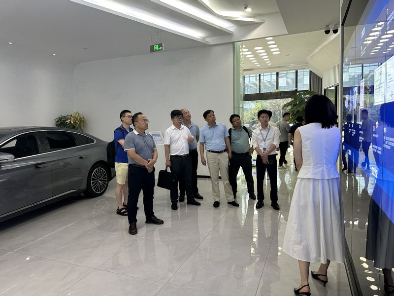 在东超科技有限公司联合总裁黄磊一行陪同下,调研组走进东超科技企业展厅,现场体验“无介质空中悬浮成像”技术在智能座舱、医疗卫生、民生工程、智慧家居、展览展示等领域的最新创新成果。
