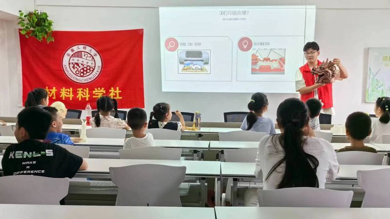 本网讯 为进一步丰富六郎镇暑期文明实践志愿活动,提高青少年儿童的科学知识水平,激发学习科学、热爱科学的热情,7月18日,材料科学与工程学院含笑花“公益N+1”困境儿童帮扶团队、真“材”实“料”乡村振兴实践团队、材料科学社联合六郎镇开展“七彩假期——3D打印童趣科普”暑期社会实践活动。