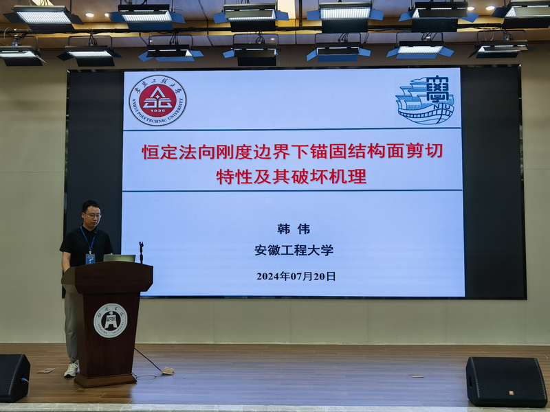 本次会议旨在交流和展示地下工程与风险防控方面的最新成果,促进岩石力学与工程理论和实践的进步与发展。会上,来自中国科学技术大学、中南大学、铜陵有色金属集团控股有限公司等知名高校、企业的专家介绍了在岩石力学与工程领域取得的最新研究成果。同时,学院韩伟博士也作了题为《恒定法向刚度边界下锚固结构面剪切特性及其破坏机理》的学术报告,并与在场专家、学者进行了深入交流与探讨。