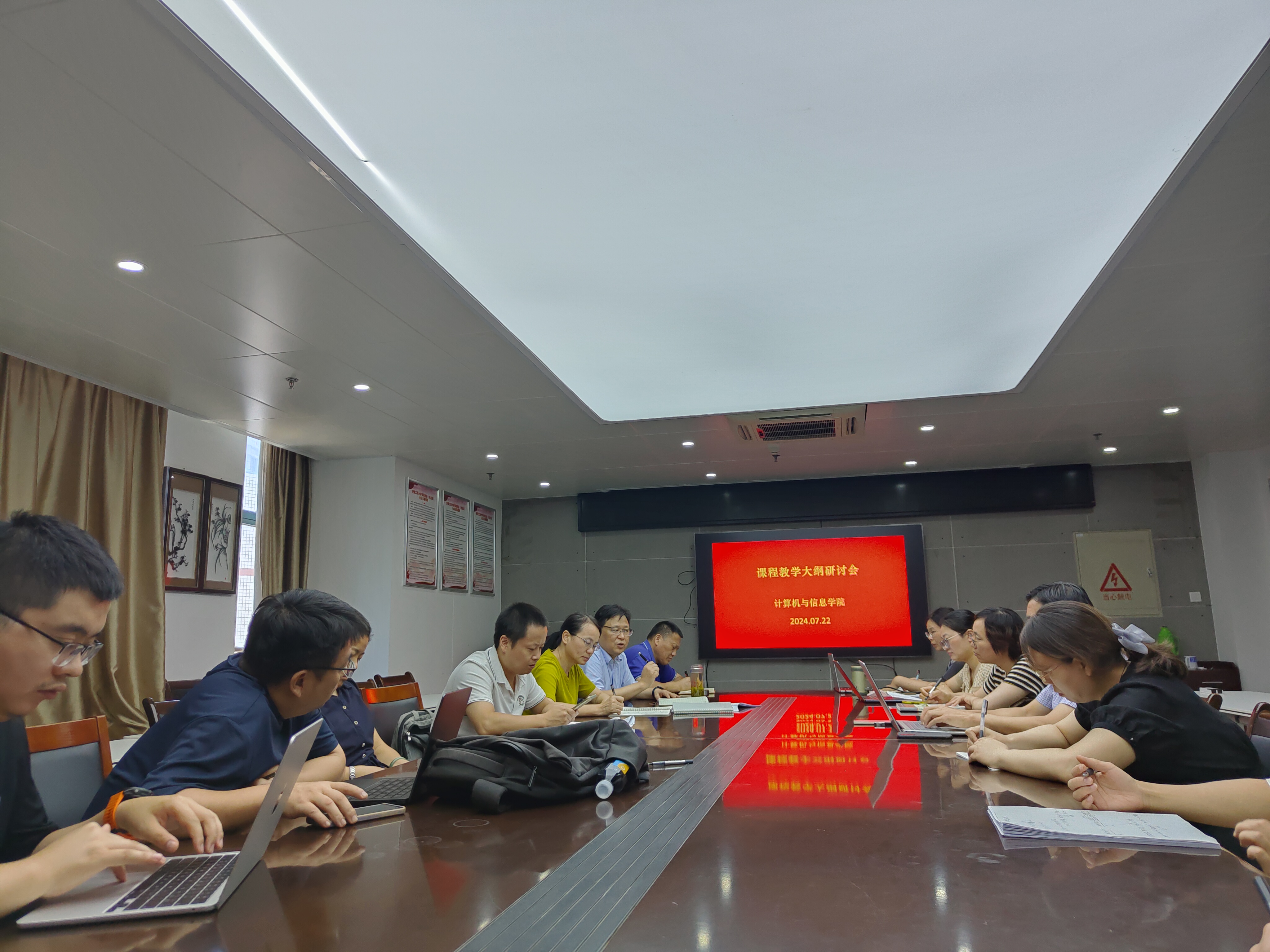 本网讯 为进一步做好2024级本科专业人才培养工作,7月22日,计算机与信息学院在C622召开了课程教学大纲研讨会议。院长汪军、副院长刘涛、相关专业负责人、课程(群)组负责人参加会议,会议由刘涛主持。