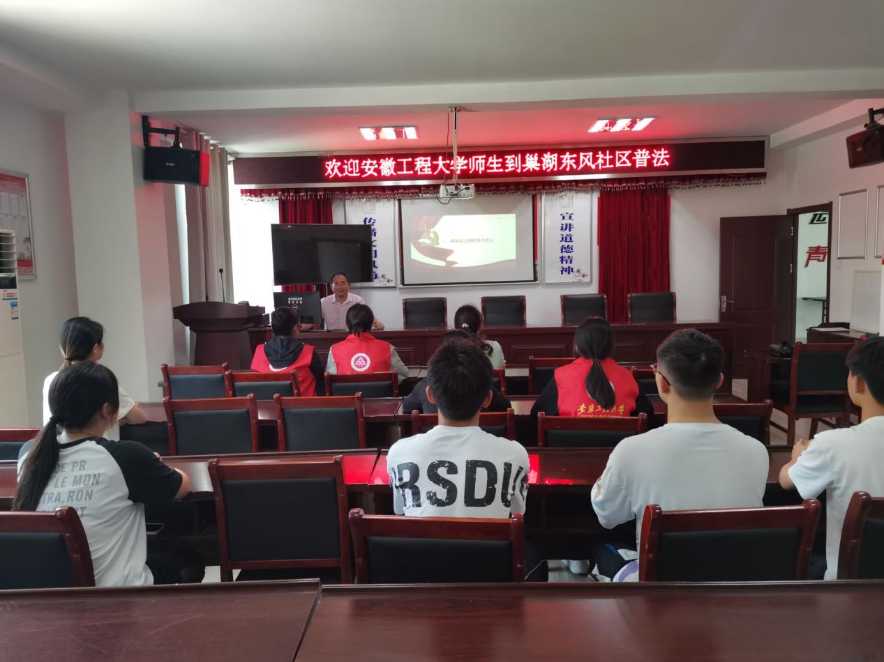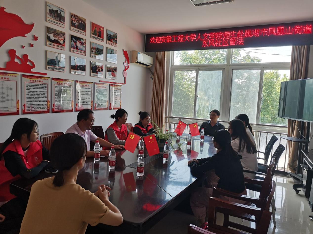本网讯 为引导广大学生投身基层法治实践,7月23日,人文学院师生一行赴巢湖市凤凰山街道东风社区开展“法治中国青春行”暑期法治实践活动。