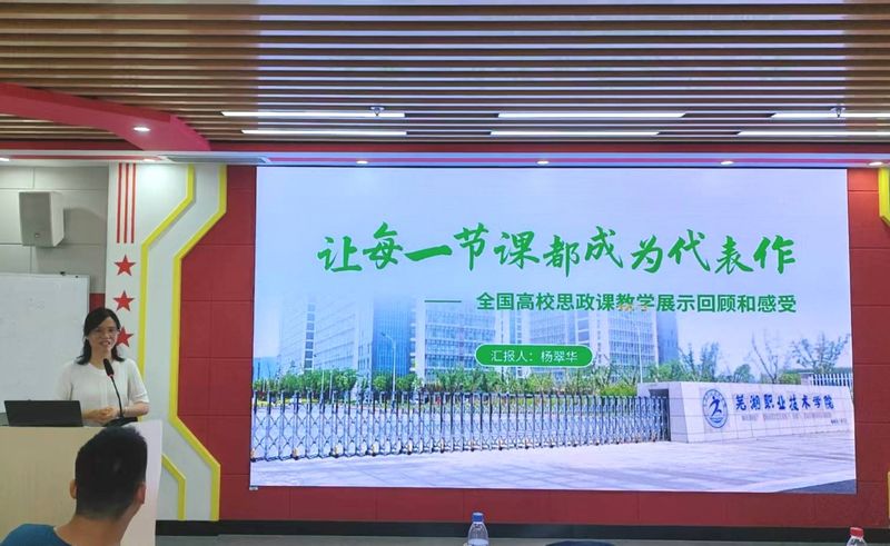 本网讯 8月3日,马克思主义学院特邀第三届全国思政课教学展示活动特等奖获得者、芜湖职业技术学院马克思主义学院教师杨翠华来院做思政课教师教学展示活动参赛指导与示范教学。学院教学副院长刘德军、教研部主任、中青年骨干教师参加本次讲座。