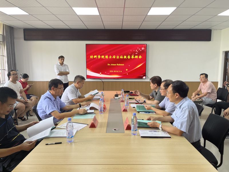 本网讯 8月11日,材料科学与工程学院在B座520会议室进行了Attaur Rahman博士后的出站报告答辩会。南京大学张善涛教授,中国科学院上海硅酸盐研究所陈学锋研究员,杭州电子科技大学宋开新教授及我校化学与环境工程学院李品华教授、彭昌盛教授应邀担任专家组成员,博士后导师左如忠教授及学院部分老师参加会议。张善涛担任专家组组长并主持出站考核会。