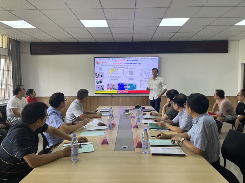 Attaur Rahman博士以“Microstructure Design for Various Applications in Lead-free Ferroelectric Materials”为题,详细介绍了在站工作的研究思路、研究内容、创新点、学术贡献以及相关研究成果。在答辩过程中,他以清晰的逻辑、详实的数据和深入的分析,充分回答了专家组成员的提问,其研究工作及出站报告的深度和广度得到了与会专家的高度评价。Attaur Rahman在我校博士后工作期间,发表SCI论文2篇(其中中国科学院一区1篇,二区1篇),并获批国家自然科学基金外国学者研究基金项目1项。专家组一致同意通过Attaur Rahman的出站考核,并对其后续研究工作提出了宝贵建议。在全体专家、相关人员的共同努力下,学院首个博士后出站考核答辩工作顺利完成,这也是我校博士后流动站培养完成的首位博士后。