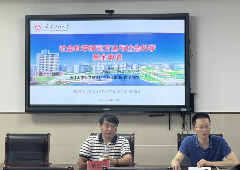 本网讯 8月24日,人文学院在学院会议室举办了国家社科基金项目申报辅导报告。浙江大学公共政策研究院副院长、博导范柏乃教授以《社会科学研究方法与社会科学基金申请》为题,做了学术经验分享和辅导报告。学院教师及研究生40余人参加了本次报告会,会议由人文学院副院长邹俊主持。