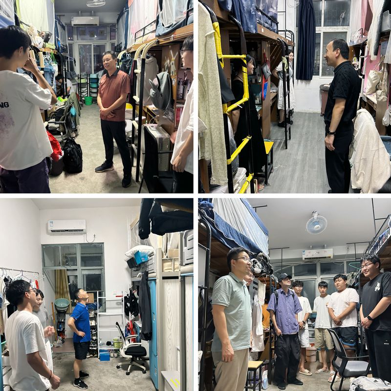 走访过程中,学院领导与学生们亲切交谈,详细了解学生的生活状况、学习情况、身心健康等。鼓励同学们在新学期尽早明确学习目标,合理规划时间,积极参加学科竞赛和文娱活动,丰富课外生活,实现全面发展。细致了解毕业年级学生的职业发展规划和学分修读等情况,鼓励有就业意向的同学要把握好秋季招聘会,积极寻找就业机会,努力拓展就业渠道。同时,学院领导针对宿舍卫生、安全用电等情况进行了重点排查,教育引导学生养成良好的生活习惯,增强安全防范意识,遵守校规校纪,共同维护寝室安全与稳定,努力营造积极、健康、乐观的寝室环境。
