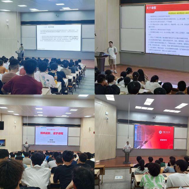 本网讯 9月8日,机械与汽车工程学院在2教报告厅召开新生见面会暨校园安全主题班会,学院党委副书记秦广虎、新生辅导员及学院800余名新生参加会议,会议由各专业辅导员主持召开。