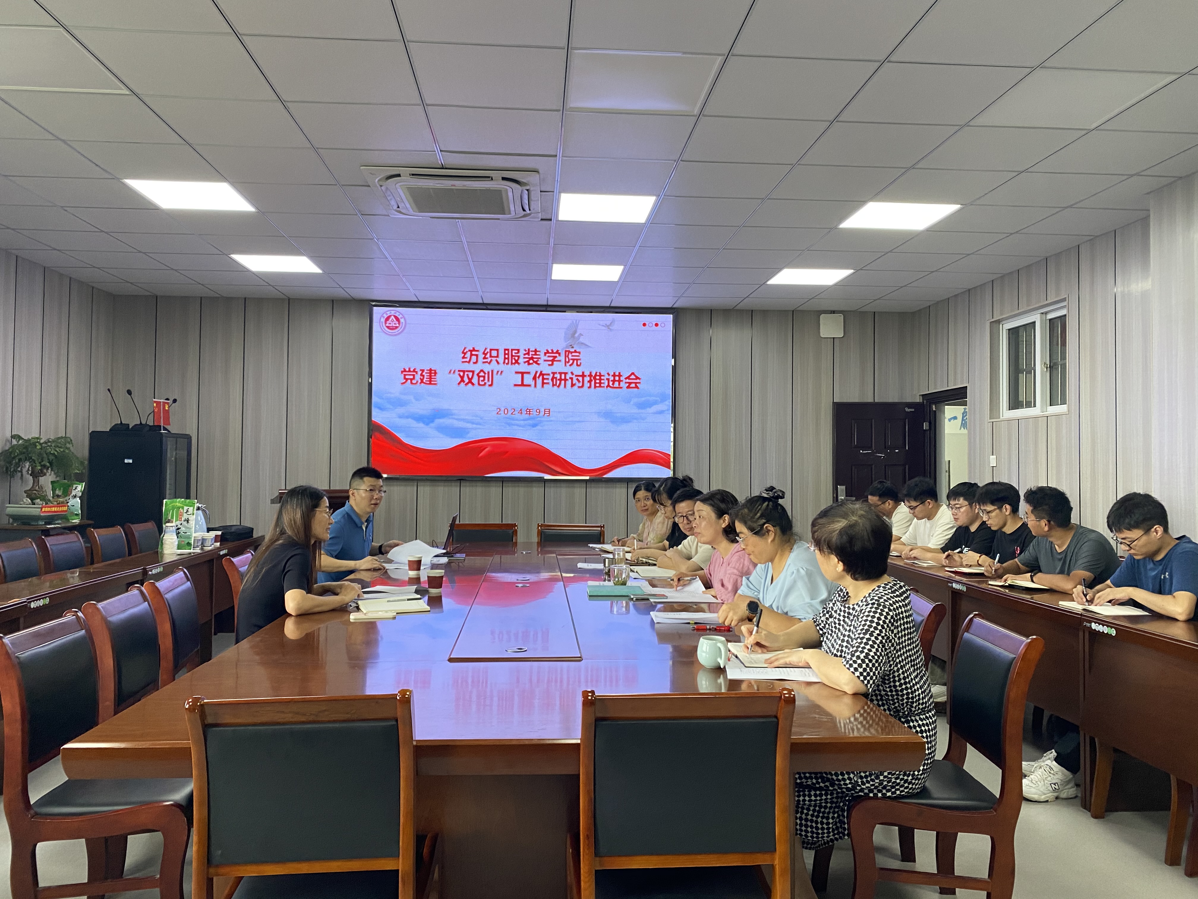 本网讯 为进一步抓实抓好党建“双创”工作,推动学院党建工作提质创优,9月20日,纺织服装学院在D座413会议室召开党建“双创”工作研讨推进会。校党委组织部副部长朱文明、组织科科长黎新宏应邀做工作指导,学院党委书记徐珍珍、党委副书记梁雪松、组织员、团委书记、纺织教师党支部和研究生党支部书记以及研究生党支部全体支委会成员参加。会议由徐珍珍主持。