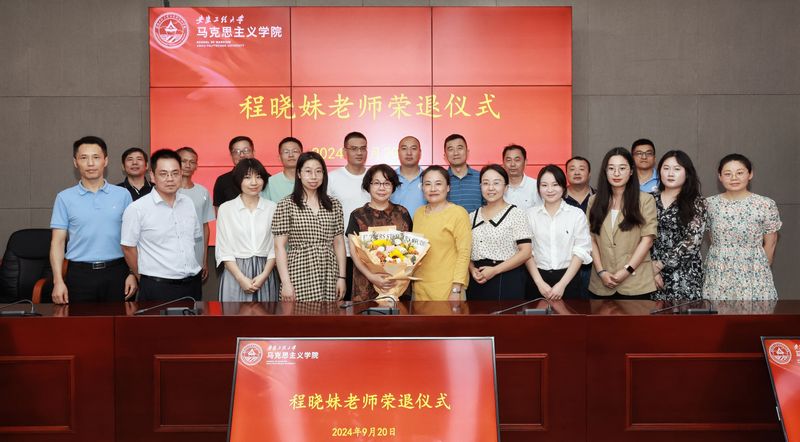 本网讯 为弘扬尊师重教的优良传统,增强教师的荣誉感和成就感,激励青年教师奋发有为,9月20日,马克思主义学院为程晓妹老师举办荣退仪式。学院领导班子成员、各教研部主任、马克思主义基本原理教研部教师、老教师和青年教师代表参加荣退仪式,仪式由学院党总支副书记、院长吴月红主持。