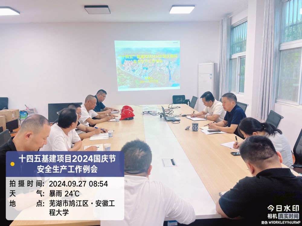 本网讯 为了进一步落实省安委会和学校关于国庆期间安全防范工作要求,确保国庆期间校本部“十四五”基建项目施工的安全、有序推进,9月27日,基建办召开“十四五”基建项目安全生产工作例会。基建办全体人员、各项目负责人、安全员、监理人员参加会议,会议由基建办副主任高勇主持。