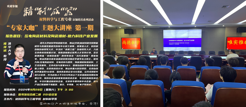 “精”材成“器”材料科学与工程专业认知培养系列活动由材料科学与工程学院材料科学系举办,活动共9期,分为四个主题,包括“专家大咖讲座”、“我与院长面对面”、“我与学长面对面”以及安徽省电子陶瓷工程研究中心实验室参观交流活动。系列活动于9月底开启,11月初结束,主要面向从事材料科学与工程专业或对材料科学有兴趣的本科生同学。