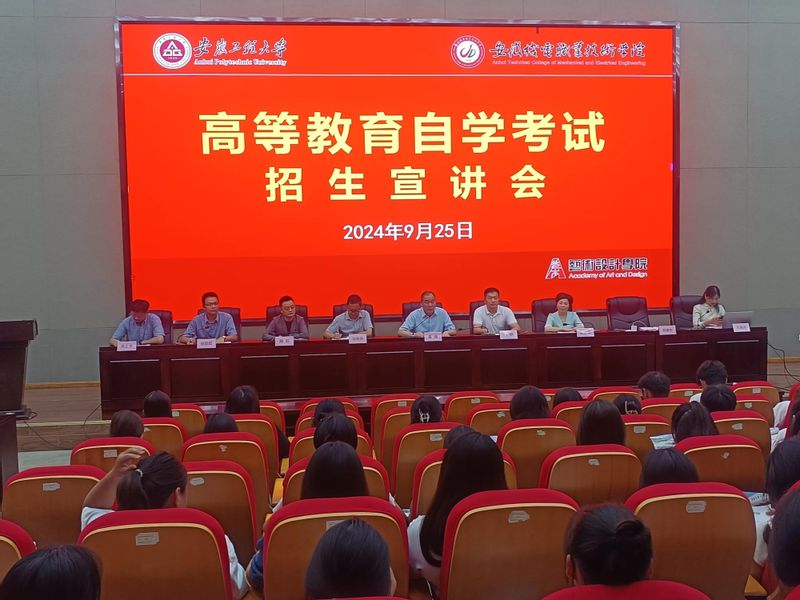 本网讯 金秋时节,硕果满枝。为推动我校高等教育自学考试工作高质量可持续发展,不断提升办学社会效益,助力更多大专和职业院校学生通过自学考试成长成才,九月初以来,继续教育学院以各院校新生入学报到为契机,院领导亲自带队,选派骨干力量先后赴亳州职业技术学院、安徽扬子职业技术学院、安徽机电职业技术学院、淮南联合大学和阜阳幼儿师范高等专科学校面向其教师和学生密集开展了自学考试政策推介及招生宣讲会,得到了所到院校的大力支持,累计近1500余名同学参加了宣讲会。