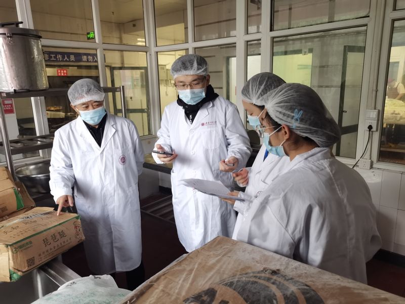 本网讯 为确保食品安全,规范食材采购与分析智慧监管系统使用,从源头上把控原材料采购、使用及毛利率控制工作,切实维护学生权益,10月10日,后勤保障处采取“四不两直”方式分组对学生食堂原材料采购情况进行抽查。后勤党总支书记张开炳、后勤保障处处长李敬华、副处长李四军、高潮,膳食服务中心工作人员及学生代表参加了本次检查。