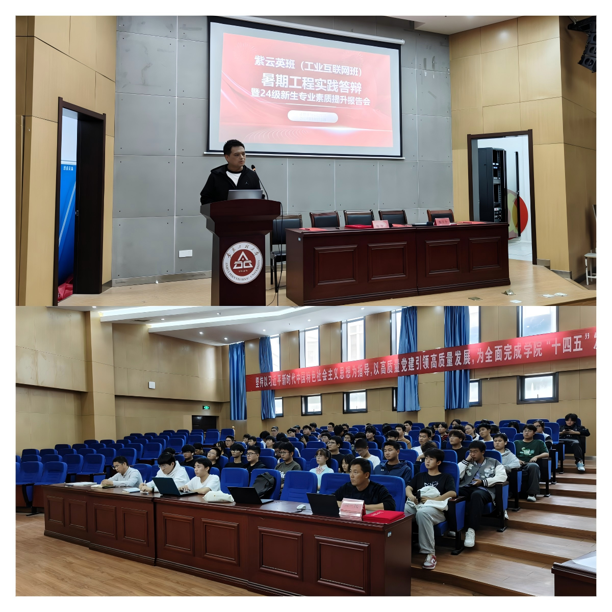 本网讯 10月17日,紫云英班(工业互联网班)暑期工程实践答辩暨24级新生专业素质提升报告会在C座报告厅隆重举行。本次活动由计算机与信息学院和安徽共生物流科技有限公司联合举办,工业互联网班学员和24级物联网工程专业新生出席活动。