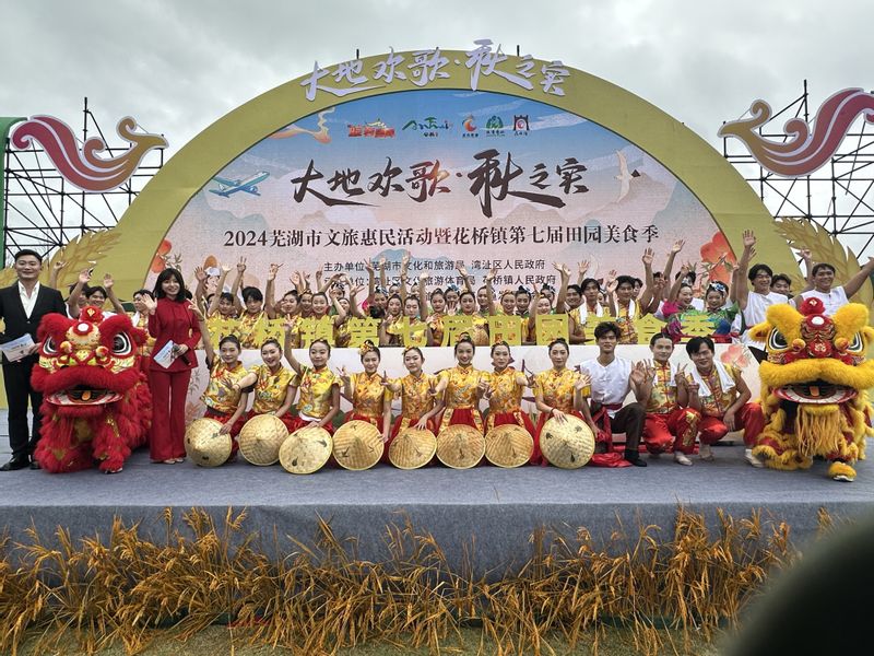 本网讯 1019日,芜湖市文化和旅游局、湾沚区人民政府主办,湾沚区文化旅游体育局、花桥镇人民政府以及湾沚区文化旅游产业高质量发展协会联合承办的大地欢歌·秋之实”2024芜湖市文旅惠民活动暨花桥镇第七届田园美食季拉开了帷幕。活动在在美丽的芜湖市湾沚区花桥镇鸠兹湾艺创共富乡村举行。