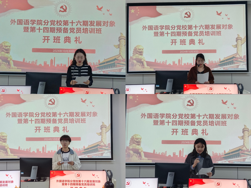 开班仪式在庄严肃穆的国歌声中拉开序幕。学生第二党支部委员许丽媛介绍了培训班管理细则和考核办法。发展对象代表汪木子、预备党员代表王宇鑫分别发言,承诺将理想信念根植于内心,坚定传承优秀文化、讲好中国故事、展现中国形象,争做一名有家国情怀的时代青年,争取早日加入中国共产党。