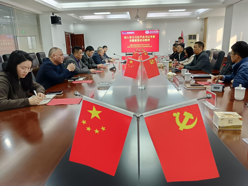 参观结束后,化学与环境工程学院化工系教师党支部与美佳新材料股份有限公司开展了支部共建。双方支部党员共同学习了习近平总书记考察安徽重要讲话精神,并进行了交流研讨。大家纷纷表示,此次活动不仅是一次深刻的党性教育,更是一次心灵的洗礼,将把学到的知识和精神内化于心、外化于行,以更加饱满的热情和更加务实的作风,投身于学习和工作中去。