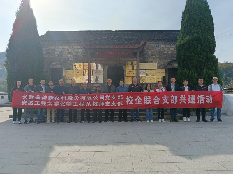本网讯 11月8日,化学与环境工程学院与安徽美佳新材料股份有限公司赴繁昌区中分村新四军第三支队司令部旧址共同开展校企联合支部共建活动。学院党委书记章兵、副书记胡承功、副院长李兴扬及化工系教师党支部成员,美佳新材料股份有限公司董事长、党支部书记王方银以及全体党支部成员参加活动。