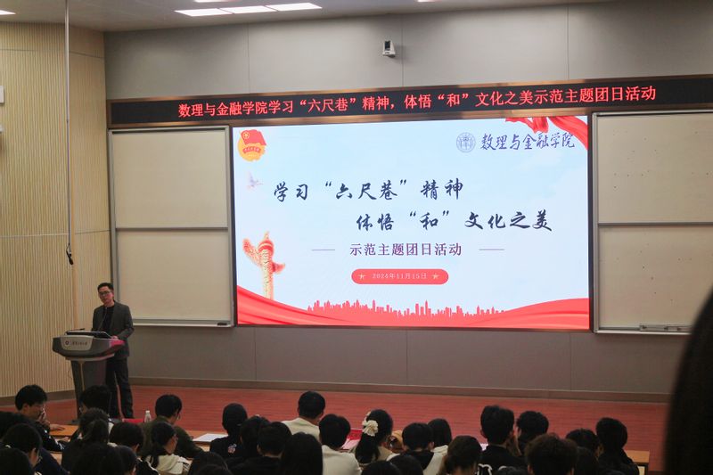本网讯 为深入学习贯彻党的二十届三中全会精神和习近平总书记考察安徽重要讲话精神,弘扬中华优秀传统美德,营造和谐相处的良好氛围,11月15日,数理与金融学院在2教报告厅开展“学习‘六尺巷’精神,体悟‘和’文化之美”示范主题团日活动。校团委书记李恒奎、学院党委副书记何志恒、学院辅导员及全体宿舍寝室长参加。