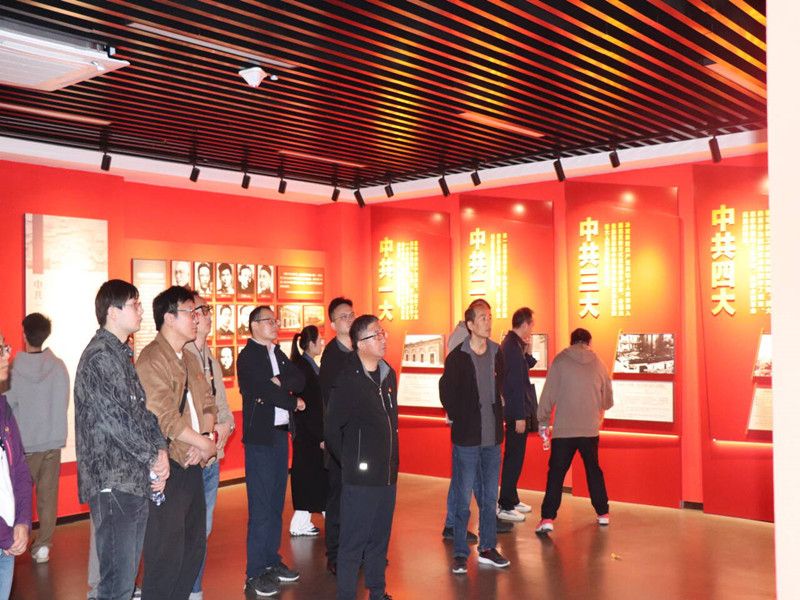 在“独秀园”通过“沉浸式”学习先辈们浴血奋战的红色故事,弘扬革命精神,感悟初心使命,汲取奋进力量。陈独秀纪念馆以时间为序,从开启民智、反帝爱国的先驱者到觉醒年代、勇立潮头的引领者,从开天辟地、建党伟业的组织者到走出监狱、矢志抗战的爱国者,详细介绍了陈独秀伟大的一生以及他的两个儿子陈延年、陈乔年烈士可歌可泣的革命事迹。全体成员跟随讲解员的脚步,认真参观学习,仔细聆听思考,深深体悟陈独秀先生为追求民主与科学、积极传播先进思想文化、推动中国共产党的诞生而不懈努力的坚定信仰、担当精神、斗争魄力和赤子情怀。