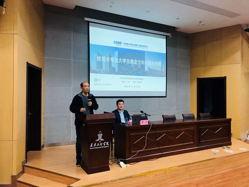 李宁,原给排水091班学生,安徽萧县人,中共党员,中电二公司副主任工程师,电子行业空管资深专家。现任中国电子系统工程第二建设有限公司-BIM技术研究所-业务科科室经理,兼北京中瑞高科技产业服务有限公司-BIM数字化事业部-华东中心负责人。李宁从就业方向、职业规划等方面展开交流,以项目案例为切入点,开展专业认知教育,鼓励青年大学生根据行业发展情况,提前做好职业规划、明确各阶段的主要任务、学会分阶段、有目标、有计划的开展实施。