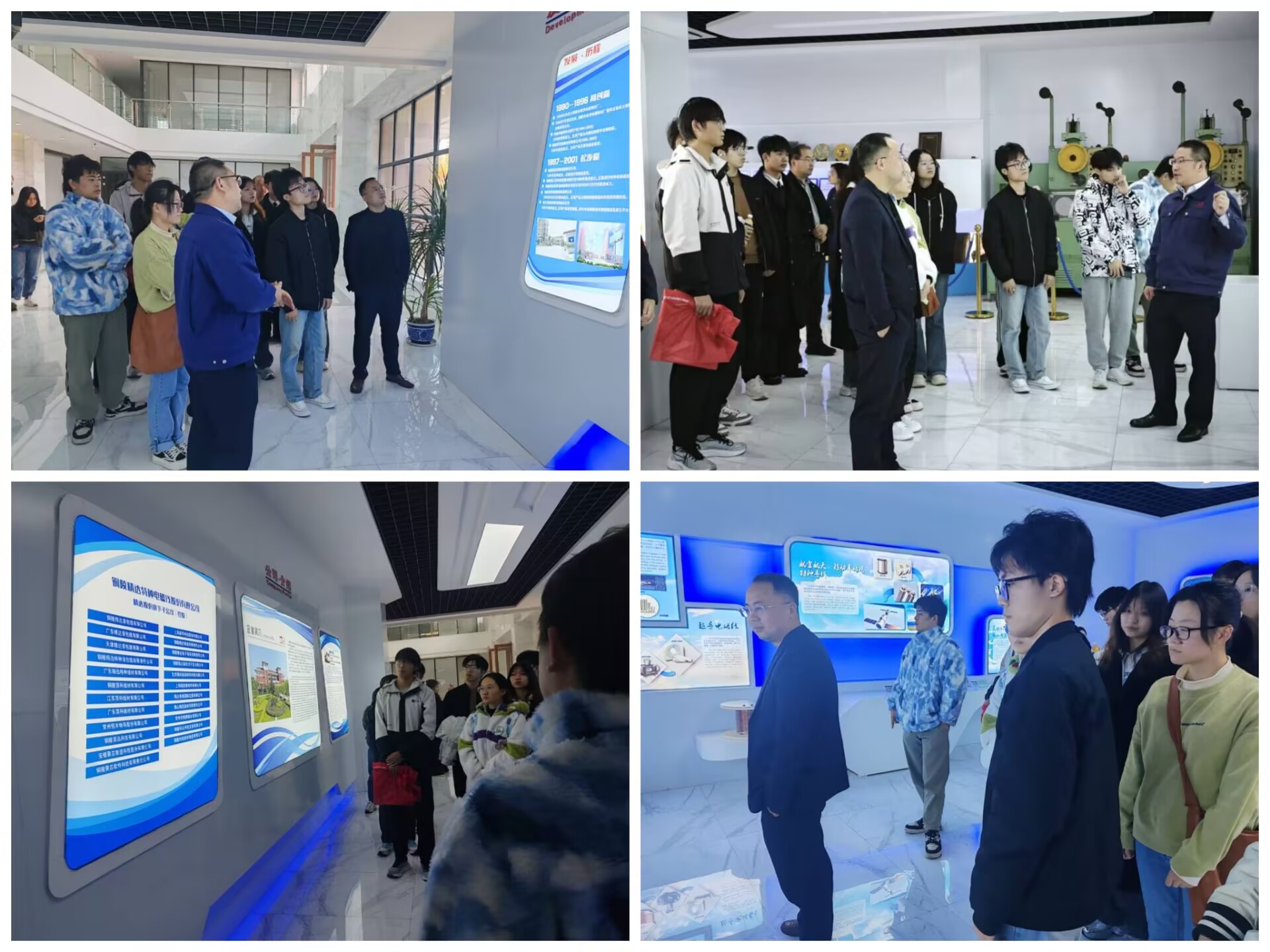 师生参观了安徽铜峰电子股份有限公司、铜陵精达特种电磁线股份有限公司、铜陵有色金属集团控股有限公司三家上市公司。在铜陵精达特种电磁线股份有限公司,全国劳动模范、国家级技能大师苏保信与学生面对面介绍公司发展业务、分享个人成长历程、指导学生做好生涯规划。在铜陵有色集团展示馆,同学们切身感受了中国铜工业摇篮、世界500强企业的魅力。通过对企业的认知走访,同学们了解了铜陵市的经济发展与科技创新情况以及企业在新材料、汽车零部件、新能源等方面取得的进步与突破,深刻感受到了家乡发展的蓬勃动力。除了先进的软硬件设施给同学们留下了深刻的印象外,企业员工积极向上、不断创新的奋斗精神也在同学们心中种下了奋斗的种子,帮助同学树立正确的就业观。