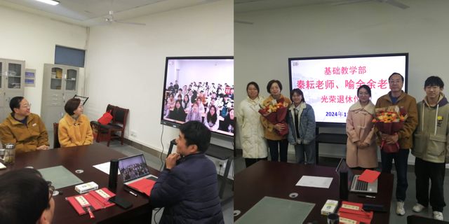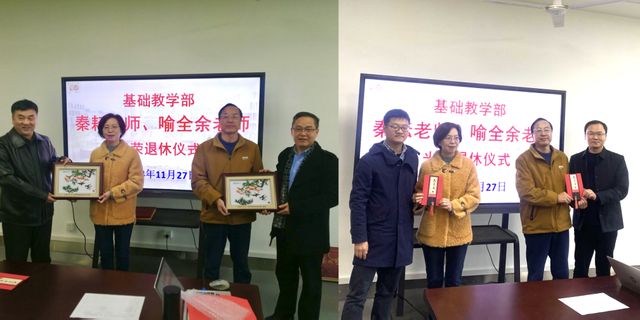 本网讯 11月27日,机械与汽车工程学院在学院基础教学部党员活动室为喻全余、秦耘两位老师举办荣退仪式,学院党委书记魏长顺、院长王建平,分工会主席秦广虎以及基础教学部全体教师参加了仪式。仪式由基础教学部副主任徐锐博士主持。
