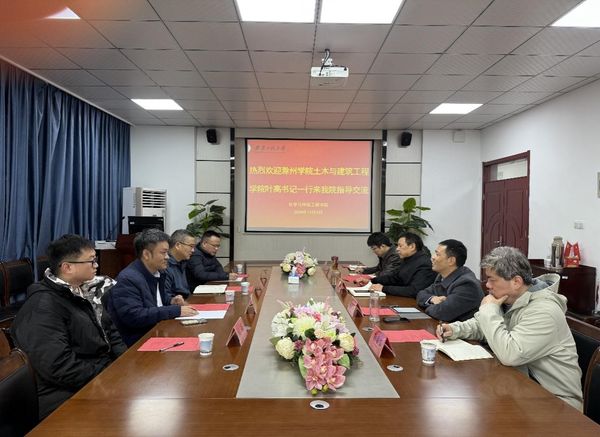 本网讯 12月4日,滁州学院土木与建筑工程学院叶高书记一行到化学与环境工程学院调研交流。学院党委书记章兵,副院长徐大勇、李兴扬,环境科学与工程硕士点负责人彭昌盛等参加座谈交流。