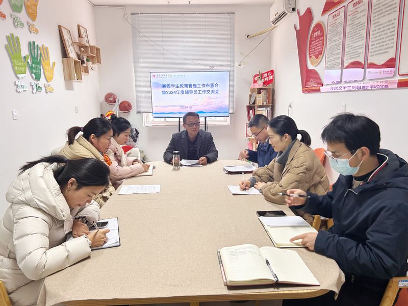 王彦青对寒假期间的学生教育管理工作进行了部署,并要求辅导员持续开展思想教育和引导,确保学生在假期中保持积极向上的心态;全时段掌握学生假期离校返乡等情况,对学生开展全面的安全教育;做好学生寒假返家乡社会实践活动的动员和指导工作,确保学生安全、有效地参与活动。