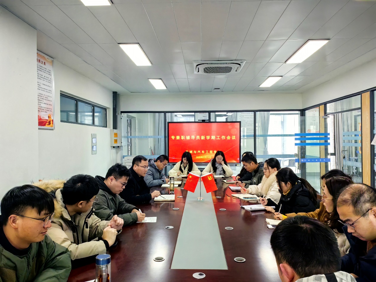 本网讯 为确保新学期各项学生工作稳步顺利开展,2月13日,机械与汽车工程学院在国际工程师学院3-1-208会议室召开新学期辅导员工作会议,全体专兼职辅导员参加会议。会议由学院党委副书记秦广虎主持。