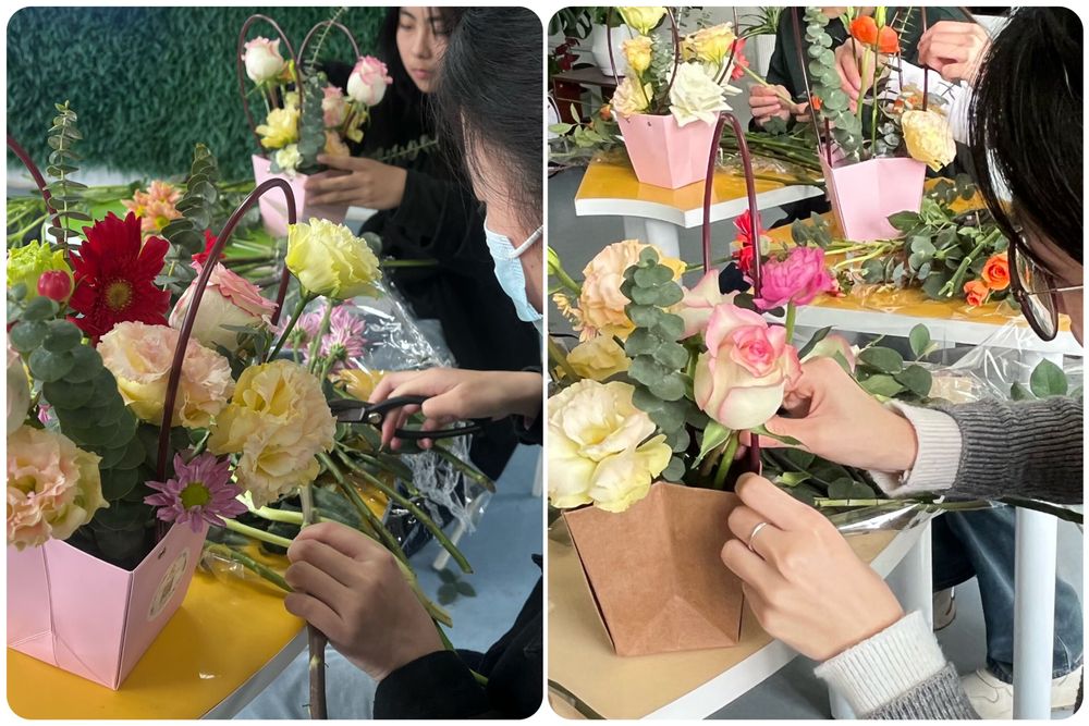 同学们在花艺师的悉心指导下,纷纷动手实践,剪叶修枝、精心配色、布局设计,彼此间团结协助、勇克难关,感受自然平衡与和谐美的同时充分表达个人的情感,疏解生活压力和烦恼,现场气氛热烈而有序。经过一个多小时的创作,一件件凝聚着学生智慧与情感,兼顾空间、结构、风格、意境的多视角花艺作品诞生。同学们纷纷展示自己的插花作品,相互欣赏、交流心得。同学们表示,“这次活动不仅让我学到了插花技巧,更使我在花的世界中找到了内心的宁静与美好。”“在繁忙紧张的学习之余,能够静下心来享受插花带来的乐趣,真是一种难得的体验。插画的过程让我意识到了生命的意义,学会了要珍惜生命中美好瞬间。”