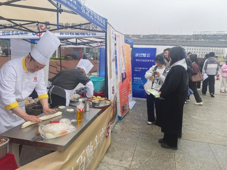 缙云县人社局特设的“烧饼品鉴区”成为亮点,现烤缙云烧饼吸引了众多师生,有效增进了校企交流。